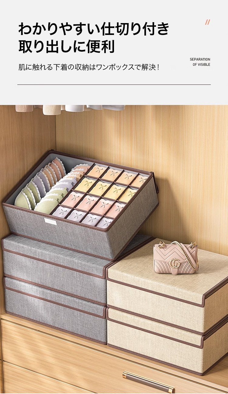 仕切り付き・ショーツ・ブラ・靴下の3-in-1収納ボックス
